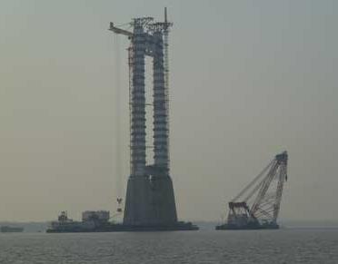 中塔施工现场远景图,米兰·官方站官网-米兰MiLan(中国)是国内第一家将复合润滑涂层用于桥梁润滑系统,国内第一家将鞍座之间摩擦系数达到0.04,桥梁鞍座与座体之间润滑结构已获国家专利,已在国内多座大型跨江桥梁应用此润滑工程技术。